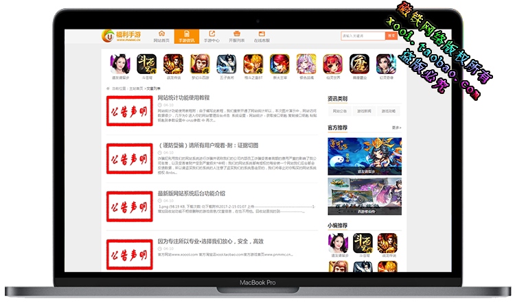 网页 手游 app盒子 电脑风格游戏网站源码,自动后台管理 1016...¥1000.00