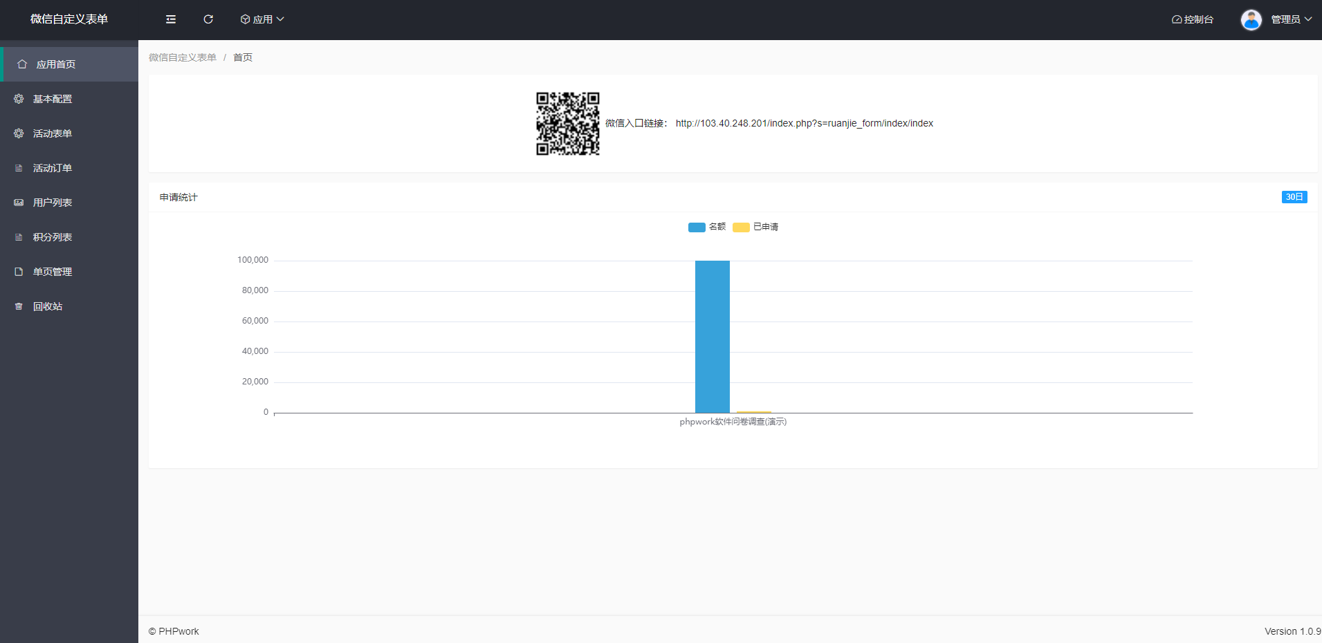 自动生成活动二维码和推广链接。