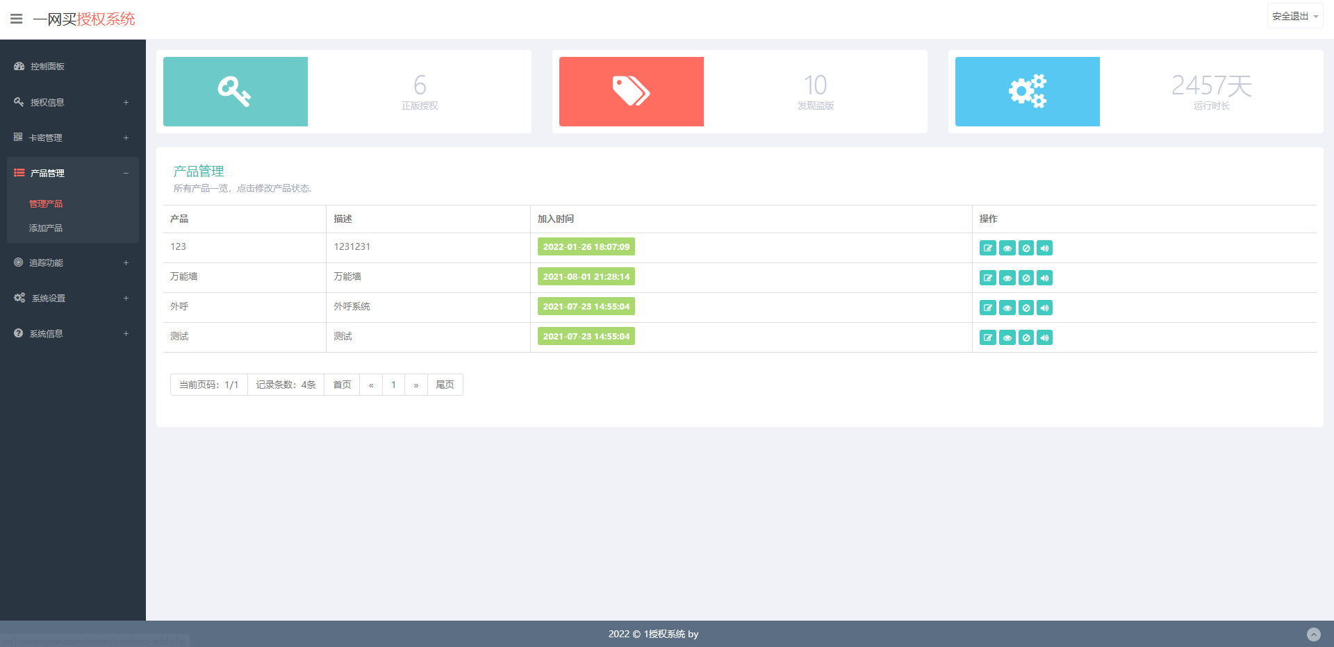 4、完善产品功能,每个产品独立授权代码