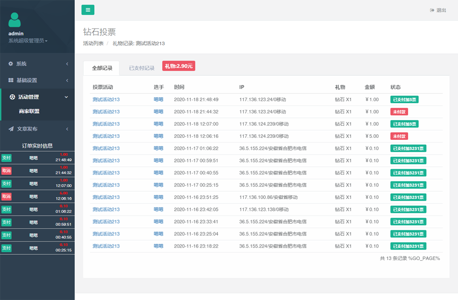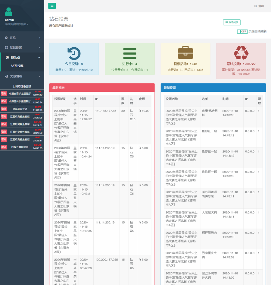 拥有独立后台系统设置,TP独立后台微信投票系统礼物投票钻石投票系统美食萌娃男神女神服务号投票系统!