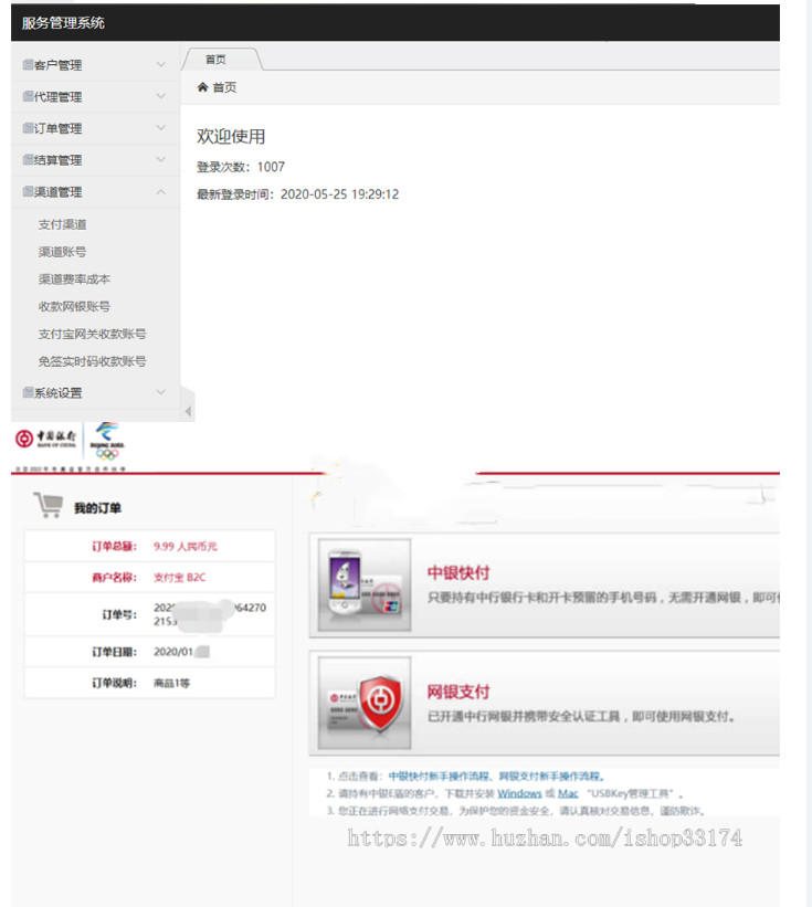 支持网银直连多家银行,原生在线网银支付接口。 商户管理、交易管理、通道管理、账号管理、自动轮询、PC端监控安全稳定,全自动回调,零延迟。