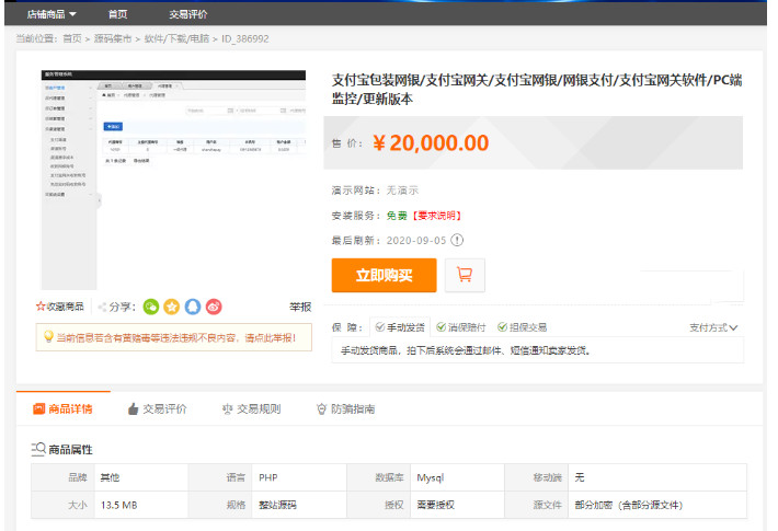 2、非平台线上交易的项目,出现任何后果均与宝网云商无关;无论卖家以何理由要求线下交易的,请联系管理举报。
