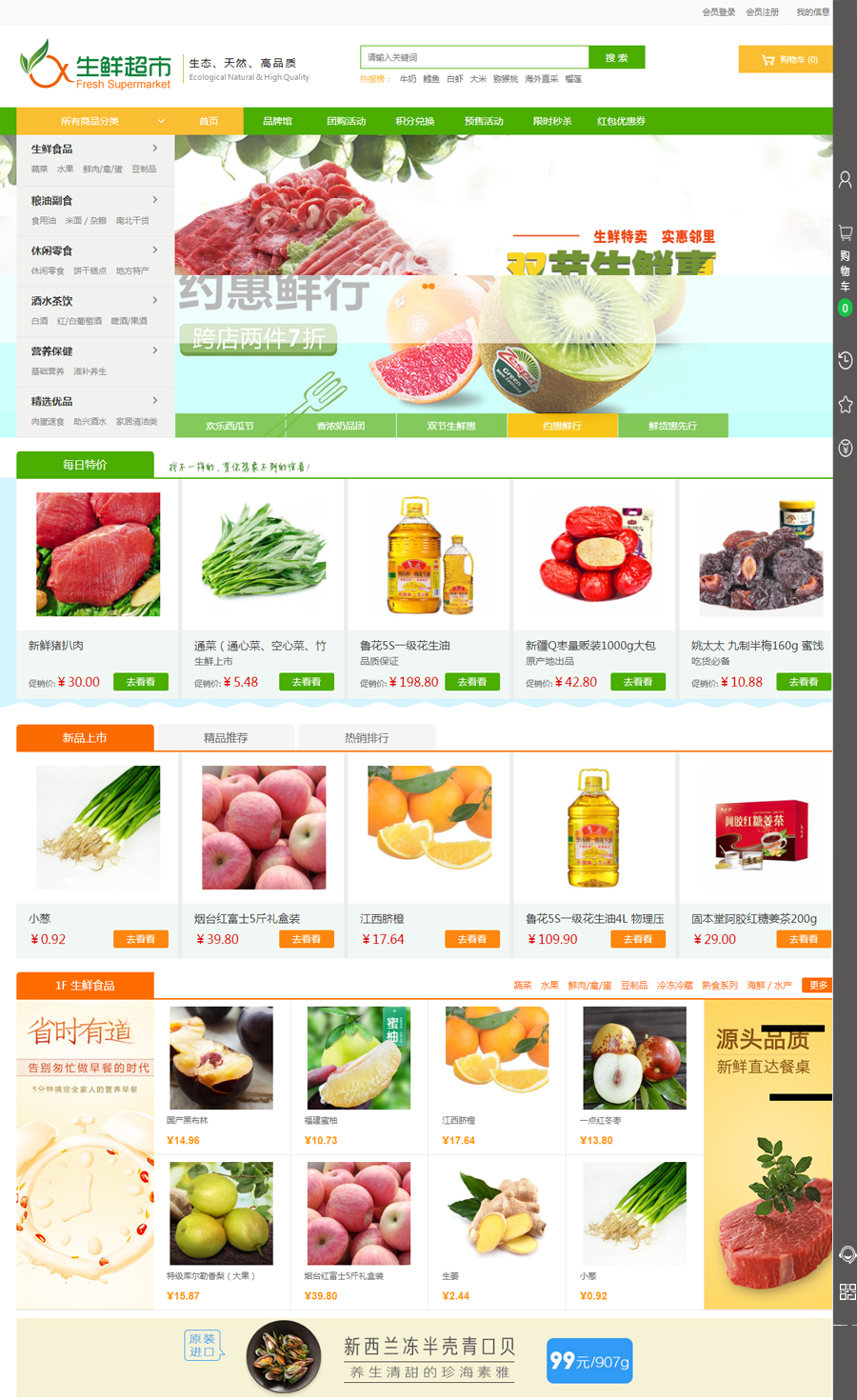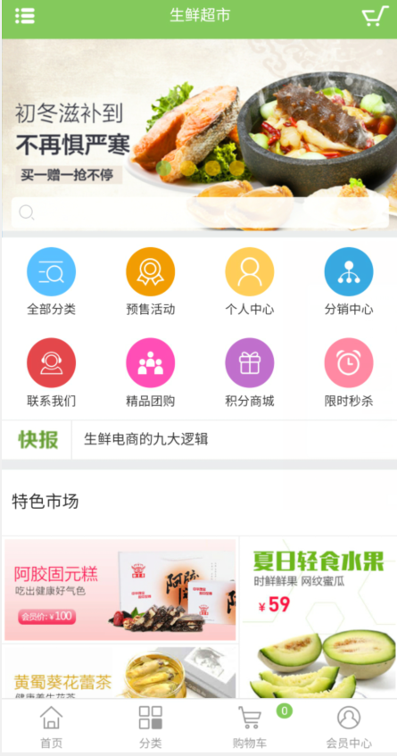 非常漂亮大气的生鲜商城源码,电脑手机端自适应,可封装APP