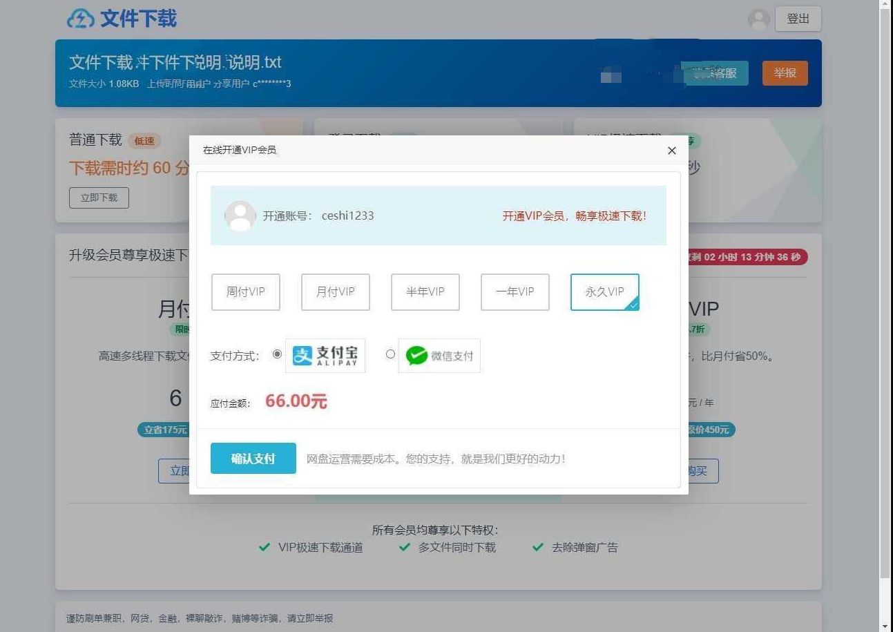 这是一款仿蓝奏网盘、城通网盘、百度网盘类型的多用户赚钱网盘程序。盈利方式:用户上传文件分享,游客下载文件开通VIP,与用户分成。