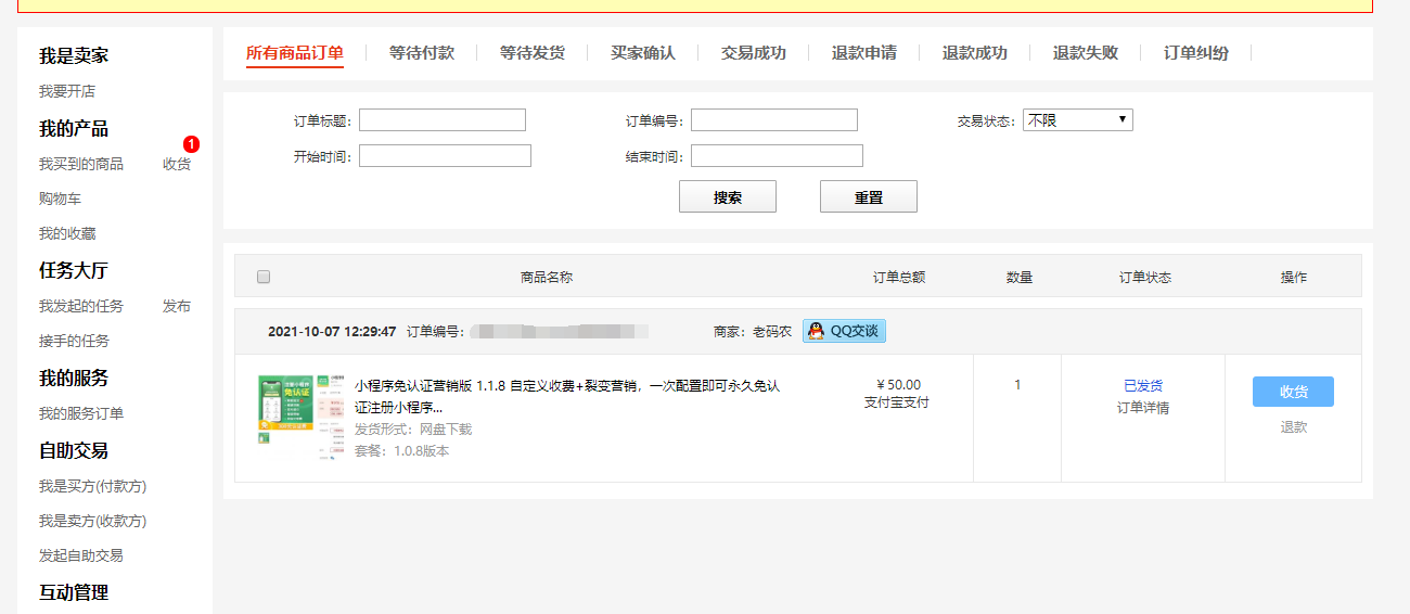 3、发货:手动发货源码,在卖家未发货前,已申请退款的;