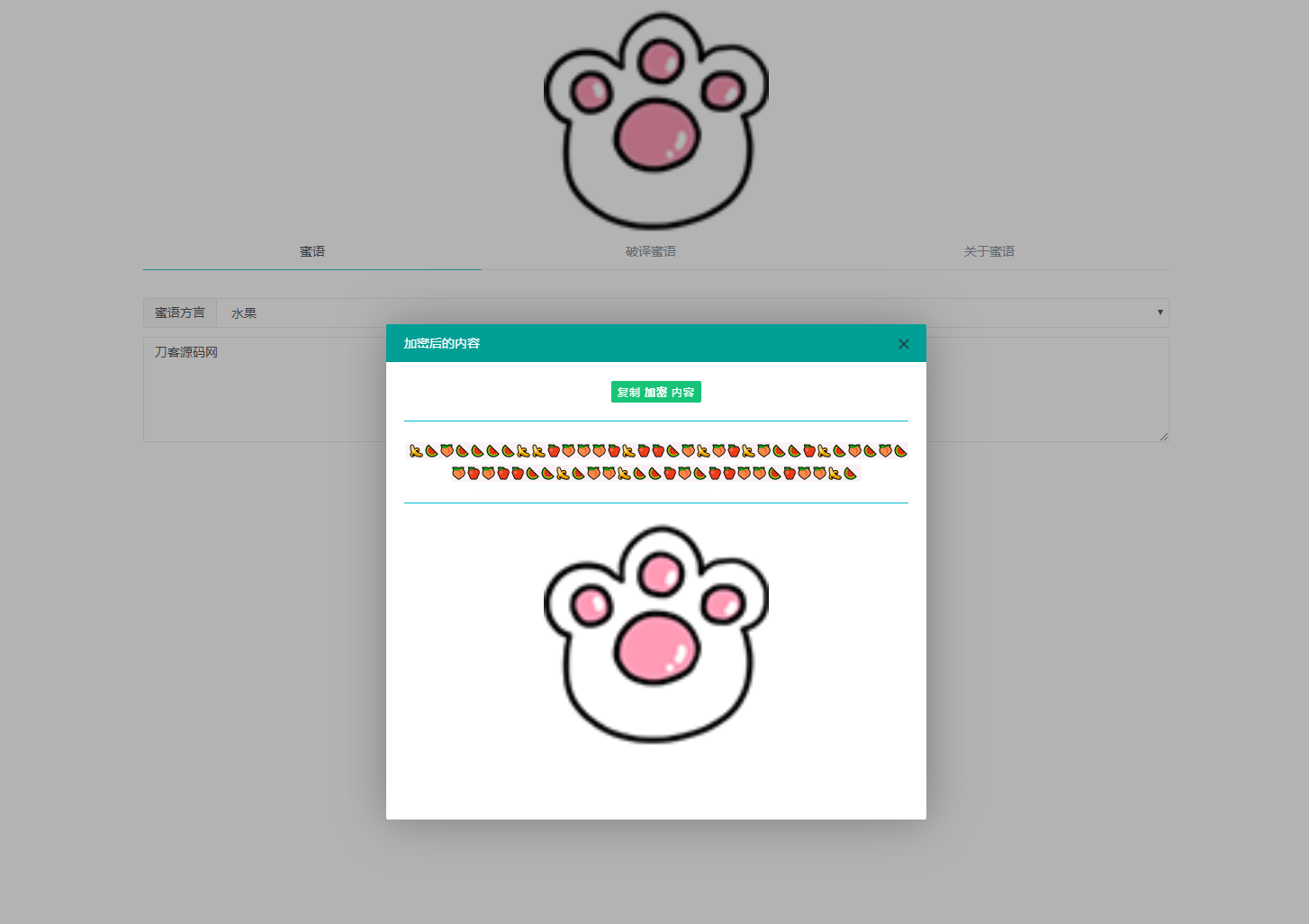 可以将文字、字母、数字、代码、表情、标点符号等内容转换成新的文字形式,通过简单的文字以不同的排列顺序来表达不同的内容!无需数据库 PHP源码 支持在线加密解密 有多种加密展示方式。