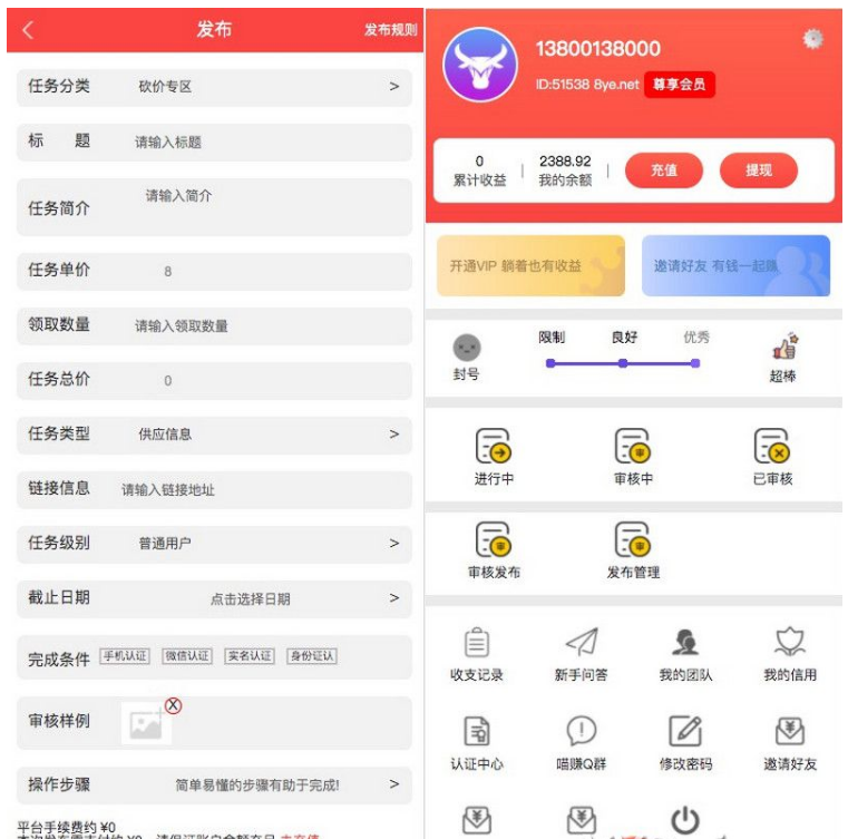 源码功能全可用,任务发布审核上传展示等等非常齐全。