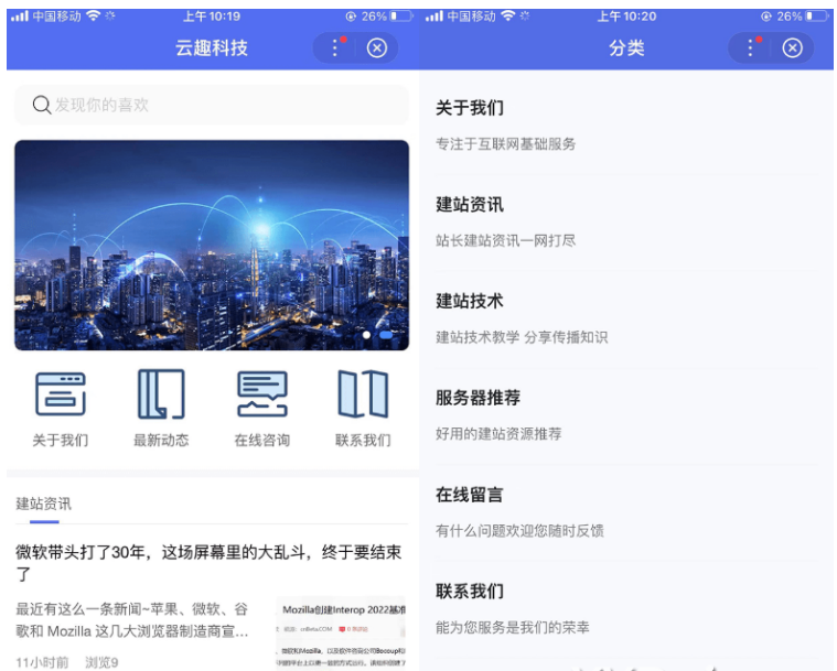 小程序端功能介绍首页,无限加载内容列表分类页,展示网站的全部栏目列表页,自动识别无图、单图、多图详情页,展示文章、相关推荐、引导关注、语音播报、电话拨号、智能客服开关、互动组件在线留言,提交到网站在线留言网站端功能介绍自定义banner自定义金刚位可选择首页显示的栏目自定义详情页logo图、引导关注图片可选择是否启用智能客服支持后台推送百度小时级收录API支持后台推送百度天级收录API支持后台推送百度搜索组件资源提交